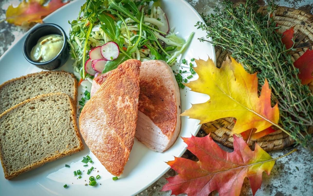 Böslebener Fleischkäse mit frischem Landbrot, dazu knackiger Krautsalat H, I, 5 | 9,70€ |